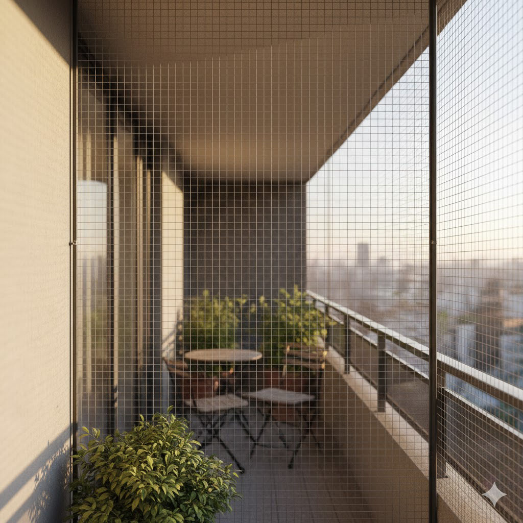 High-quality balcony safety nets in Vijayawada providing protection for children, pets, and families with durable, weather-resistant materials.